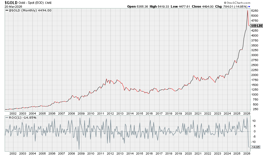 Even with the inflation spike, Gold prices had their worst week since 1983 (-10.5%) and are now working on their worst month since the GFC…
