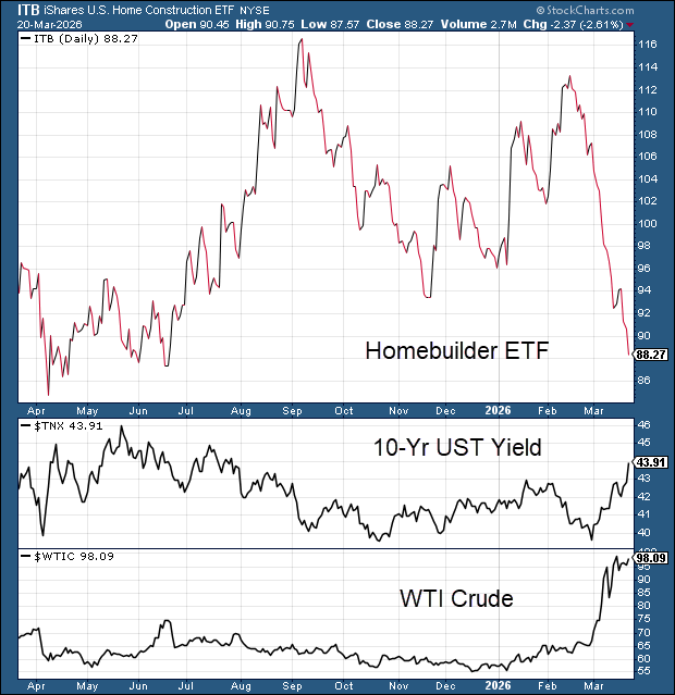 Rising construction costs and now rising interest rates is going to stop all new housing activity as the Homebuilder ETF implies…