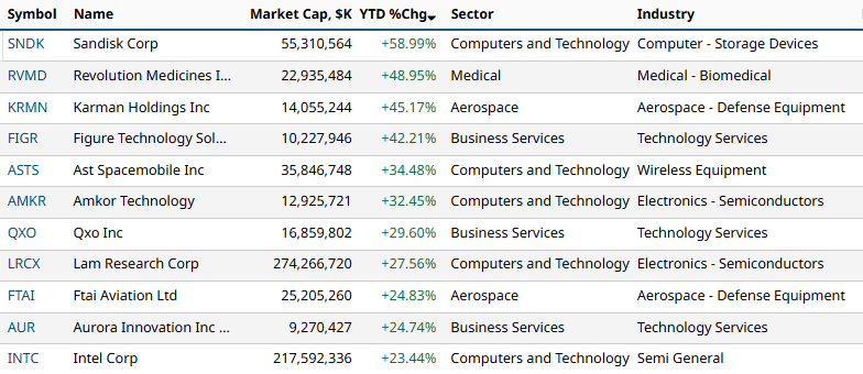 Back to the markets, these Russell 1000 stocks have put up a great year of performance just in the first 6 trading days of 2026...