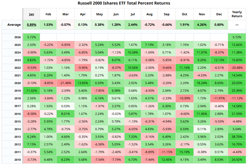 The past four times that the Russell 2000 started January with a 5%+ gain worked out well for the rest or the year...