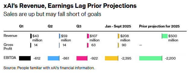 XAI revenue nearly doubled quarter-over-quarter to $107 million for the three month period ended Sept. 30, 2025, according to financial documents shared with investors and reviewed by Bloomberg...