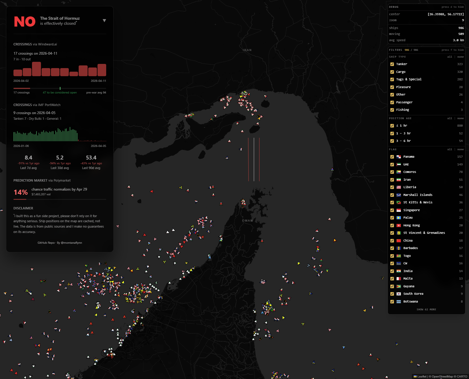 “Is Hormuz Open Yet?” is a website for tracking the status of ship crossings in the Strait of Hormuz.