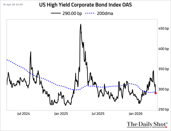 Even with everything happening in Iran and with Software company valuations, the US High Yield Corporate Bond Index OAS fell below its 200-day moving average on Friday. Less panic selling and more opportunistic buying can be a good thing.